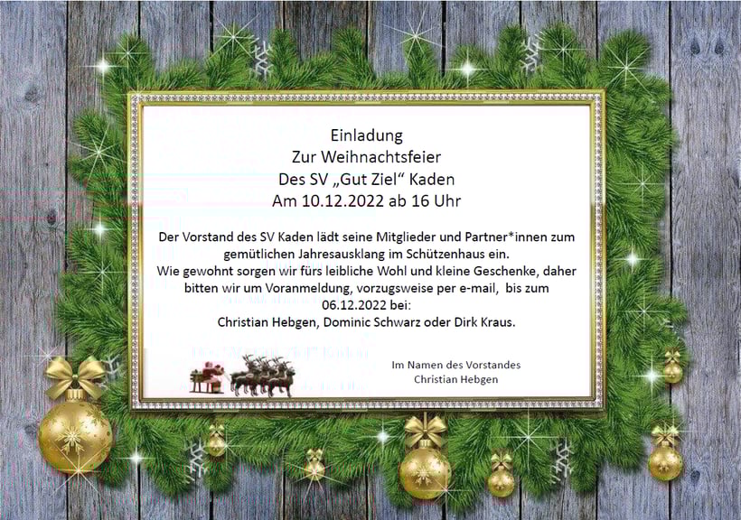 Ich wünsche Euch im Namen des SV Kaden eine gesegnete Weihnachtszeit und einen Guten Rutsch ins neue Jahr.